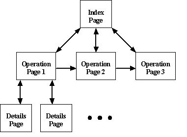 Figure 3 shows examples of an index page and an operation page. Note that the navigation button are big, which facilities touch screen operation. See also http://www.isr.umd.edu/Labs/CIM/bk/wkinsts/finish.htm .
