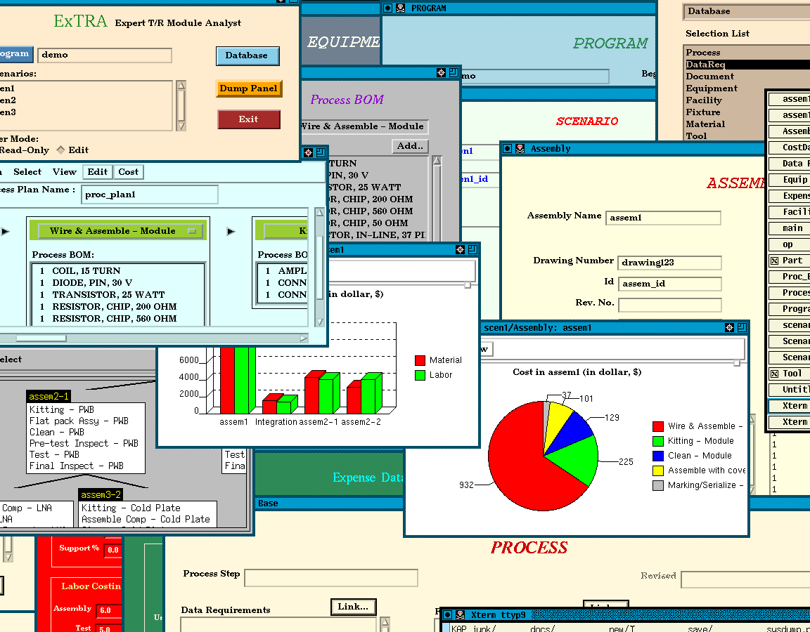 The ExTRA is used to generates new plans based on the design description and a set of manufacturing constraints; retrieve/modify existing process plans from the knowledge base; and analyzes resulting plans with respect to cost, quality and manufacturability. It can suggest cost-effective means of producing T/R modules by allowing a design to be rapidly subjected to "what-if" type of analysis techniques. Furthermore, ExTRA can result in trade-off studies of costs versus quality, or versus any suitable system performance measures. The cost model uses estimation techniques to closely match with the real data and ensures both accuracy and consistency with the Westinghouse data. The quality module is designed to investigate in the context of T/R modules both quality engineering for product design and for process design. The basic user interface of ExTRA system is mouse-driven and keyboard input oriented based on X-Window system environment.